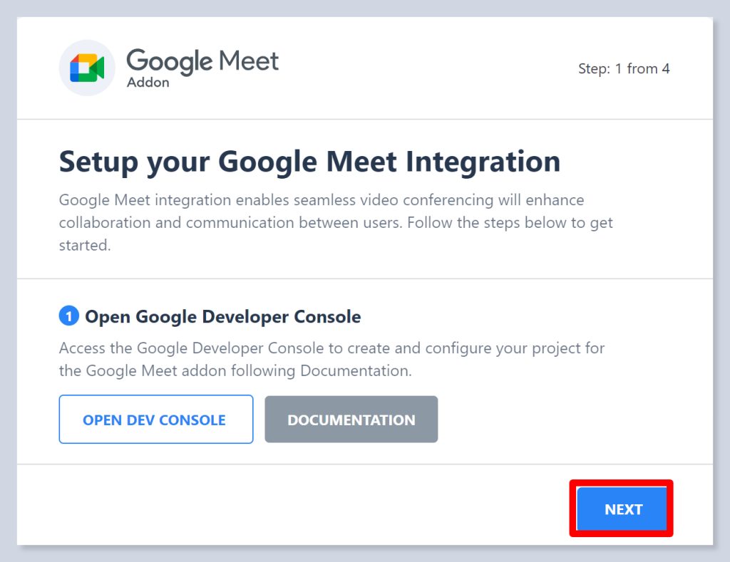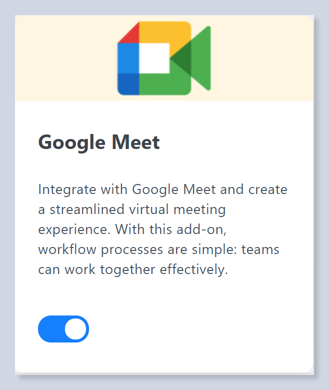 That’s all! You have completed the integration setup. Next, you will be redirected to the Google Meet Addon settings.