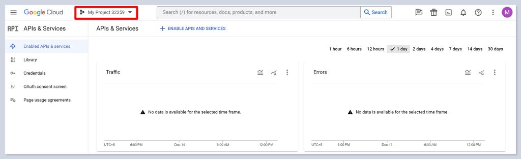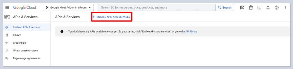 - Then enable APIs and Services by clicking on this button.
