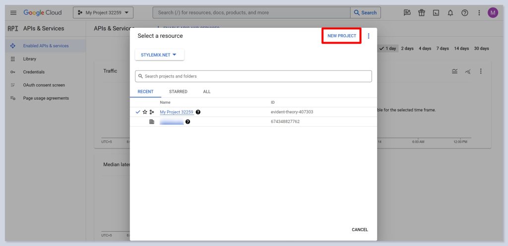 - Сhoose one of the existing projects or create a new one.