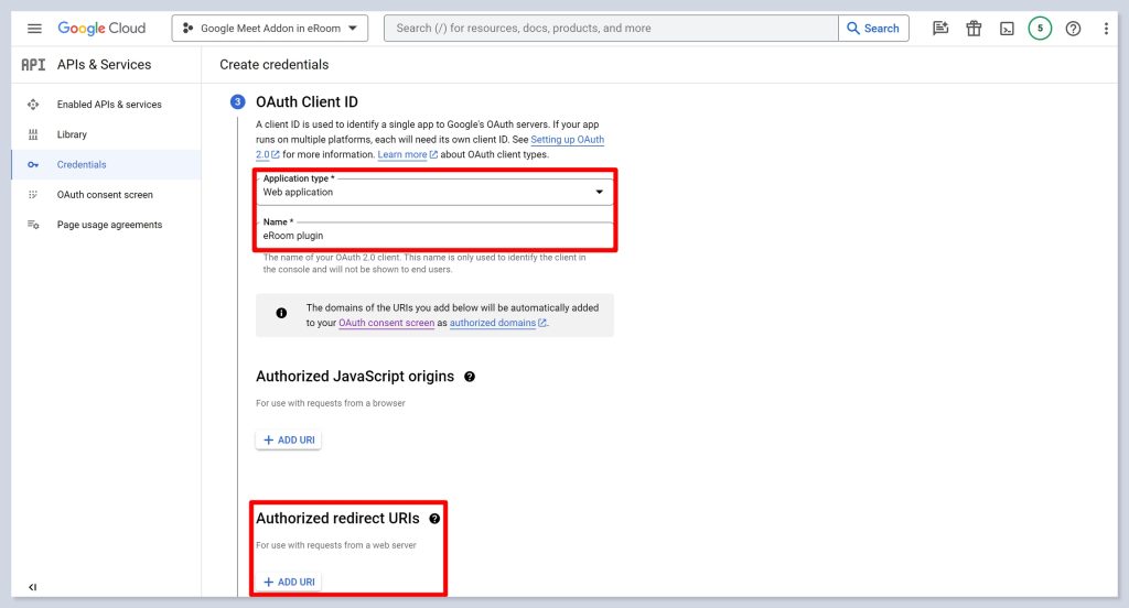 - After that, you can select the OAuth Client ID. Select Web application as your application type. Then, you will need to establish an Authorized redirect URI.