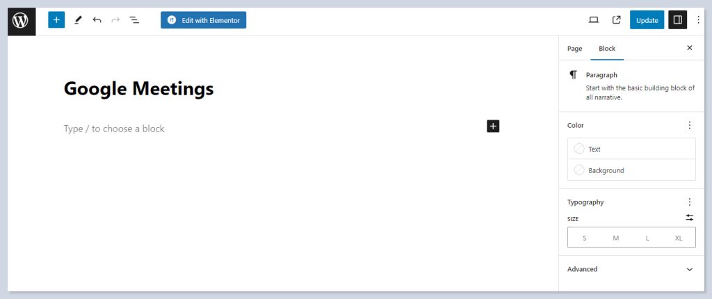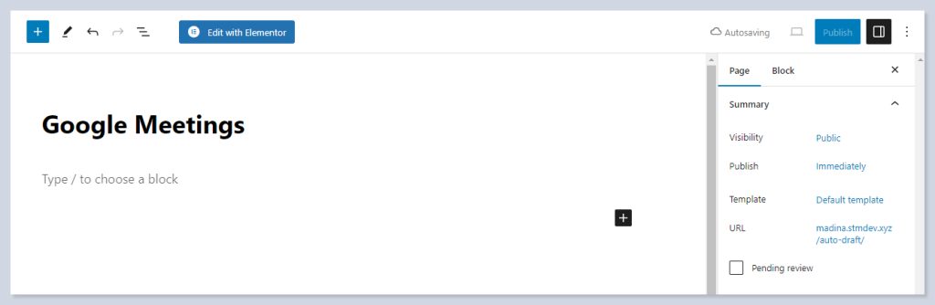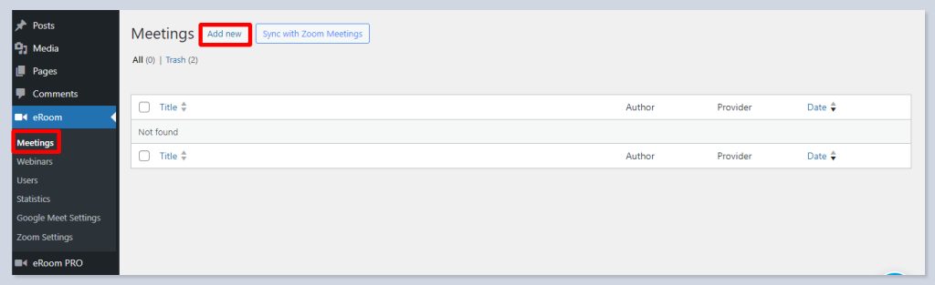 Create a page for meetings on your WP dashboard: