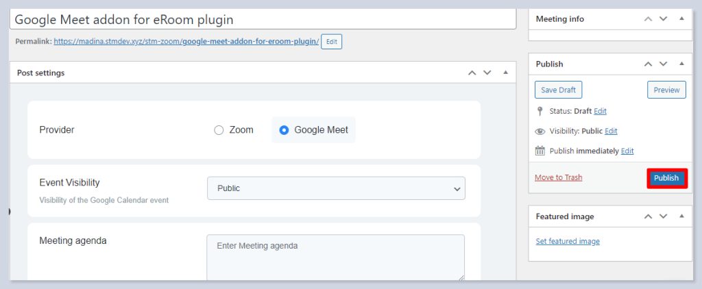 - When you set up everything for the meeting, publish the meeting.