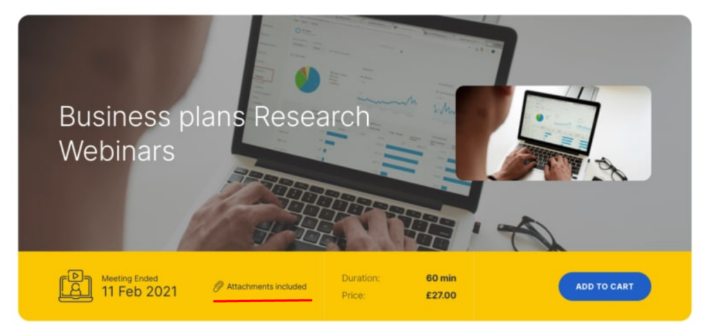 In the Zoom meeting/webinar product page, you can add it to the cart by getting the information about the meeting/webinar, duration, price, sale price, date, and more.