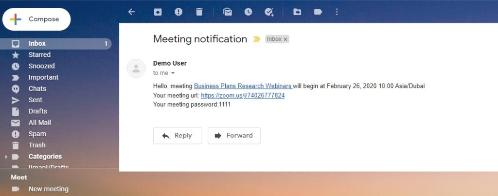 Once you set it up, participants will receive a reminder message by email about the session 10 minutes before it starts.